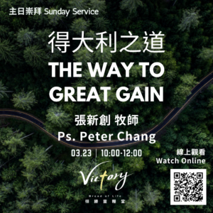 - 23主日崇拜|3. 23 Sunday Service 本週由 張新創 牧師 來與我們分享信息,讓我們預備心來領受神的話語和安息日的祝福!This Sunday we have Ps. Peter Chang to come and share the message, let us prepare our hearts to receive the light of His Words and the blessing of Sabbath.