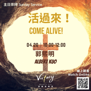 - 20主日崇拜|4. 20 Sunday Service 本週由 郭熙明 來與我們分享信息,讓我們預備心來領受神的話語和安息日的祝福!This Sunday we have Albert Kuo to come and share the message, let us prepare our hearts to receive the light of His Words and the blessing of Sabbath.