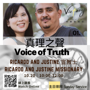 - 20主日崇拜|10.20 Sunday Service 本週由 Ricardo and Justine 宣教士 來與我們分享信息,讓我們預備心來領受神的話語和安息日的祝福!This Sunday we have Ricardo and Justine Missionary to come and share the message, let us prepare our hearts to receive the light of His Words and the blessing of Sabbath.