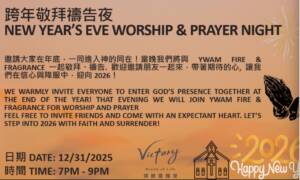 邀請大家在年底,一同進入神的同在!當晚我們將與 YWAM Fire & Fragrance 一起敬拜、禱告,領受神對新一年的心意,為教會、城市與列國代求。歡迎邀請朋友一起來,帶著期待的心, 讓我們在信心與降服中,迎向 2026!